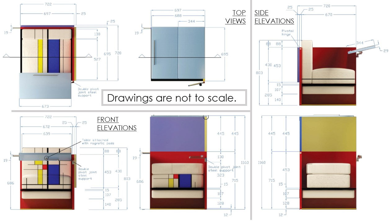 2. Stowed table for eating/working/socializing