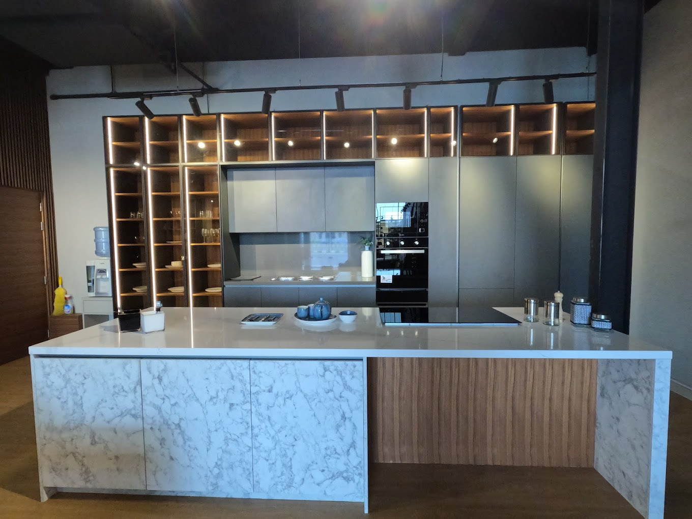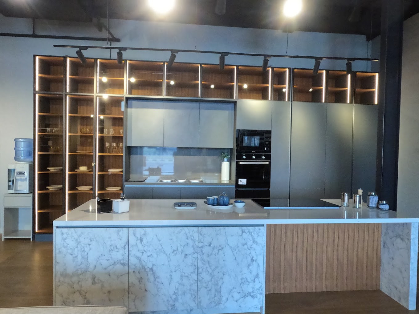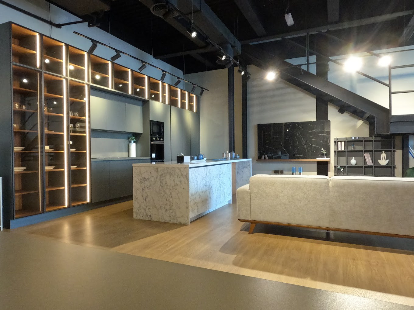 The furniture company opted to open a new showroom branch in Sharjah, UAE to expand its market. They required the showroom to have a minimal and industrial luxury interior design, while also displaying their different kitchen and closet lines. As a result, a lot of the furniture required thorough research and development beforehand so it would be designed for standardized production.