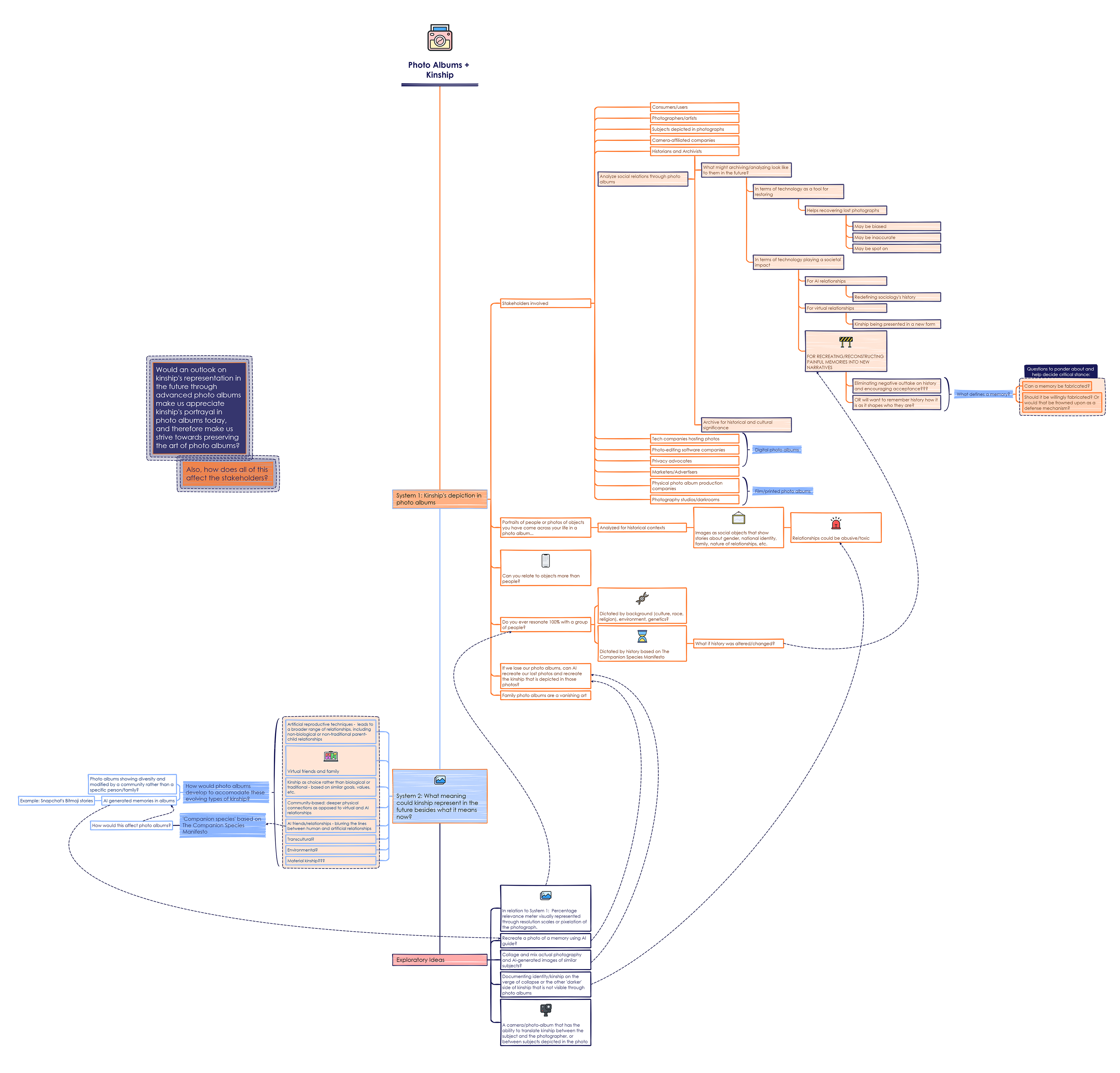 Since the topic 'Photo Albums' seemed very shallow in the beginning, I first tried to do some research of it in the context of 'kinship', which was also my thematic cohort group. I found myself diving into sub-topics relating to relationships and relative resonance to subjects depicted in photographs (whether people or objects). Through my analysis of involved stakeholders, I leaned into learning more about how historians and archivists examine and study social relationships from old photographs to construct historical narratives.